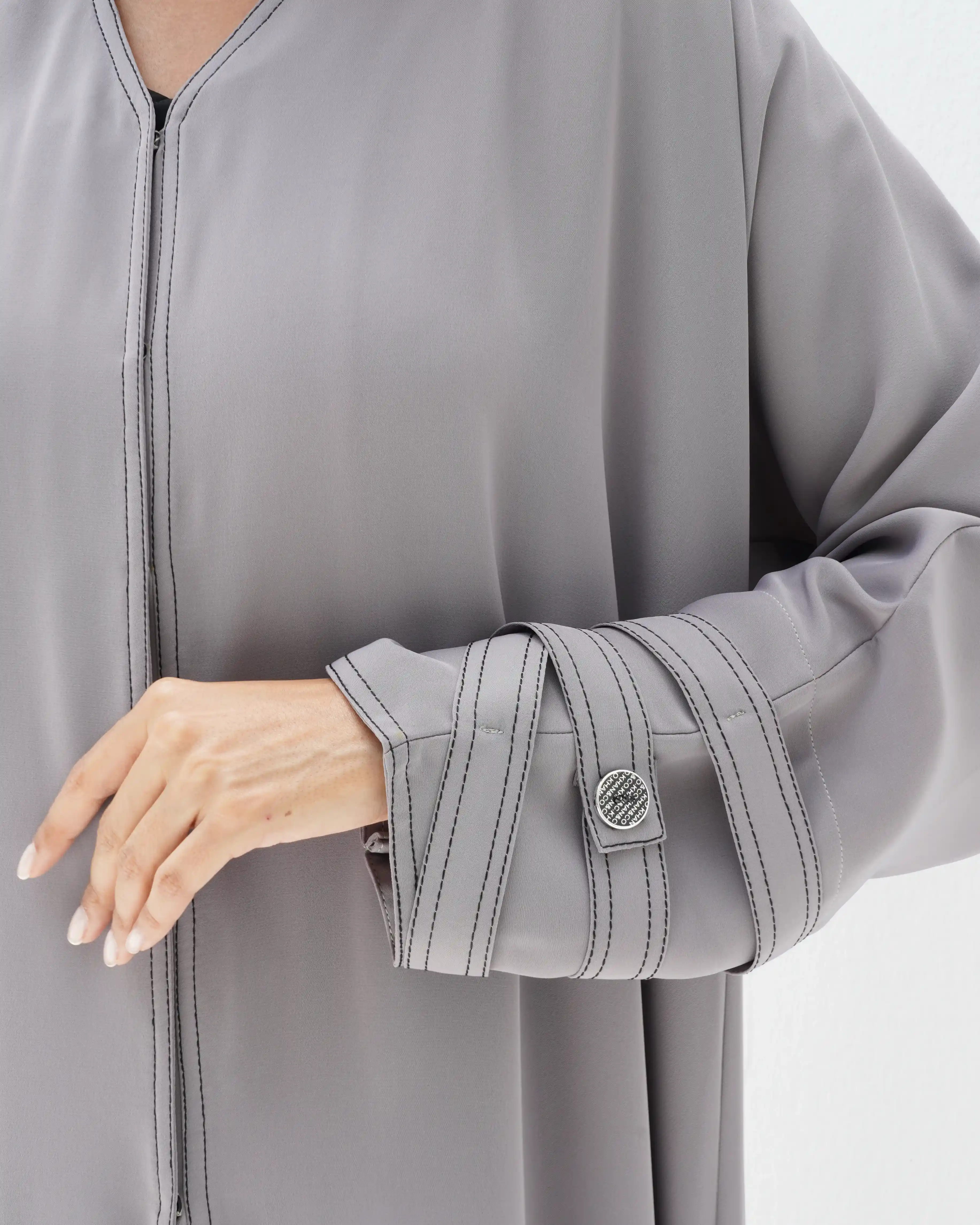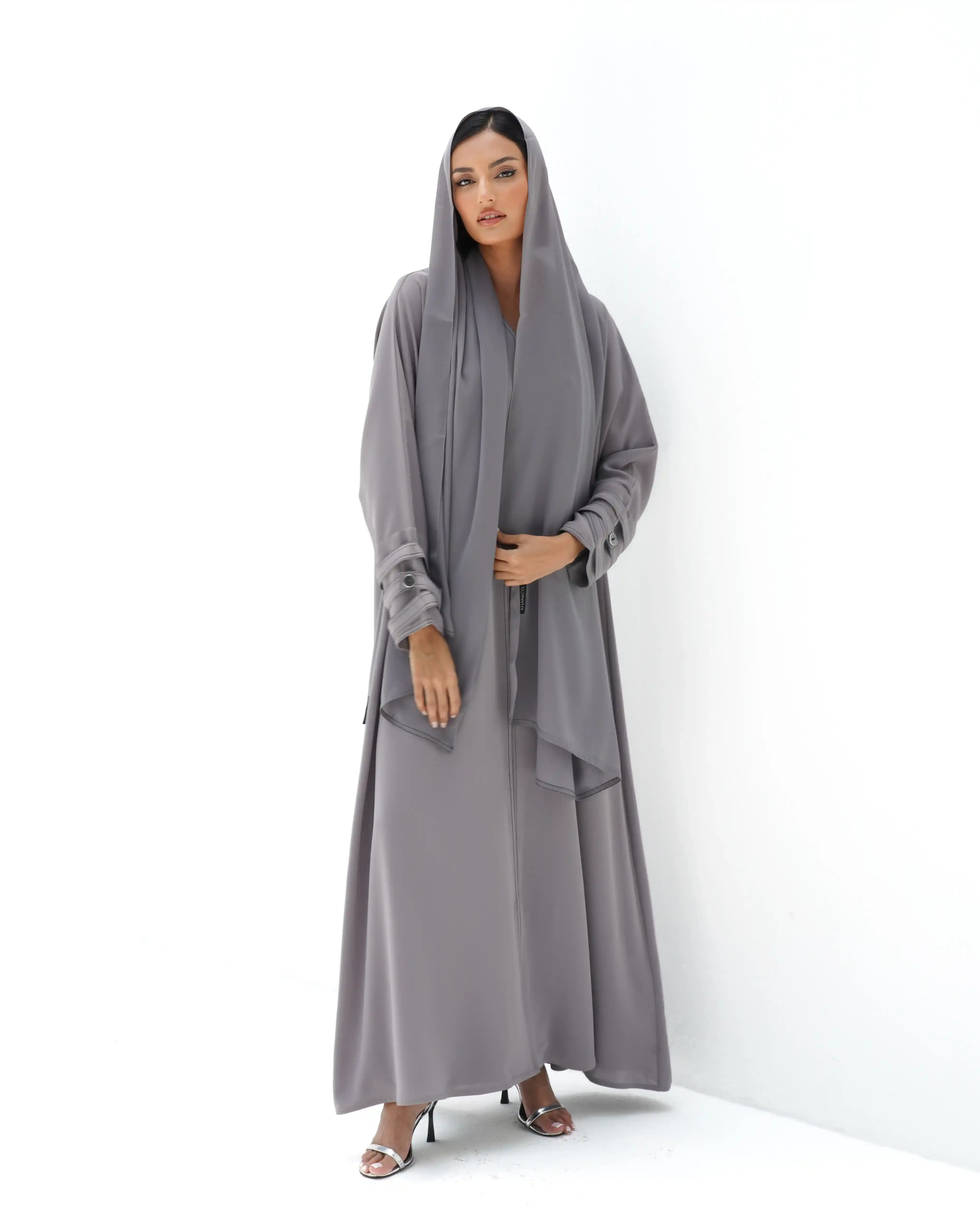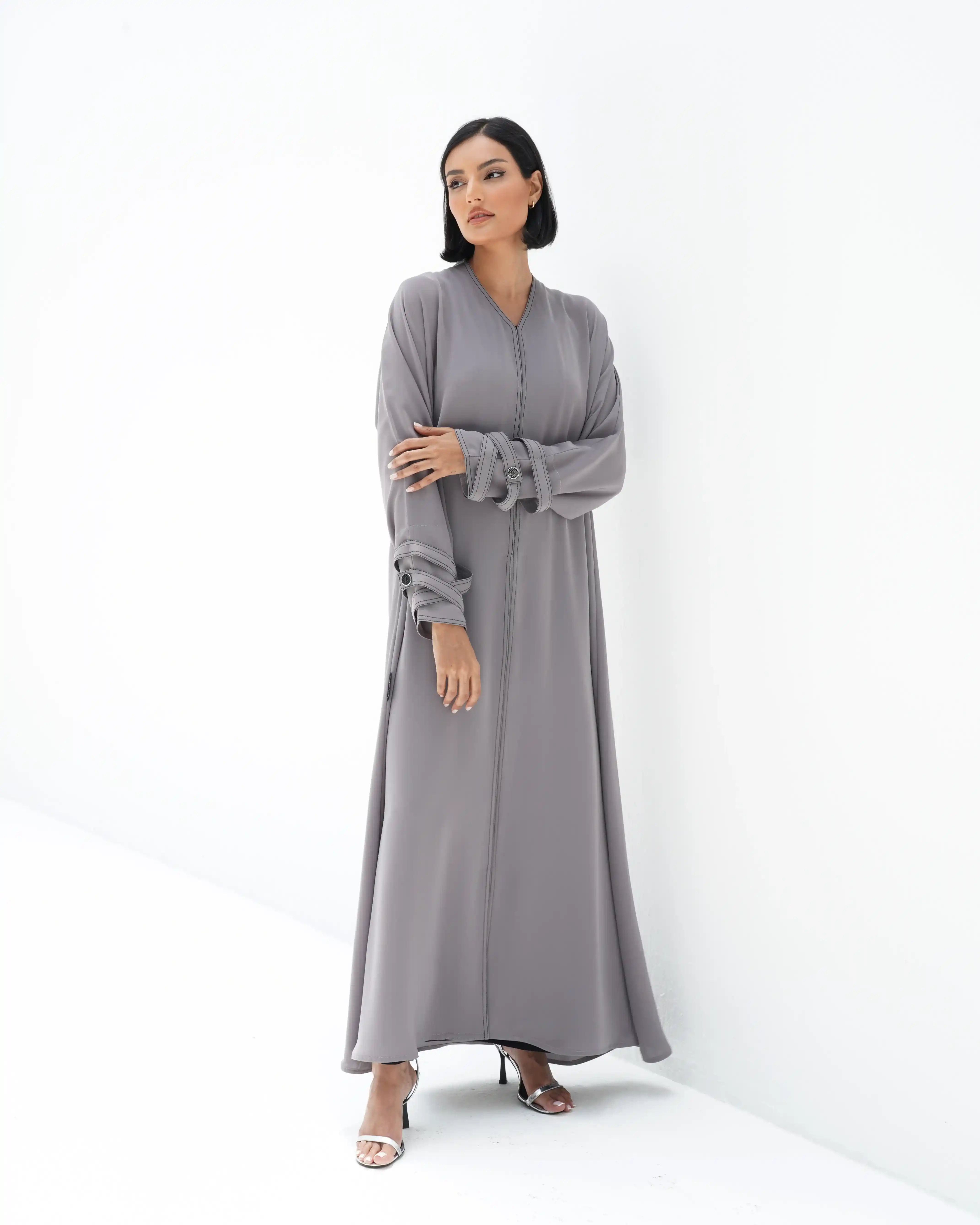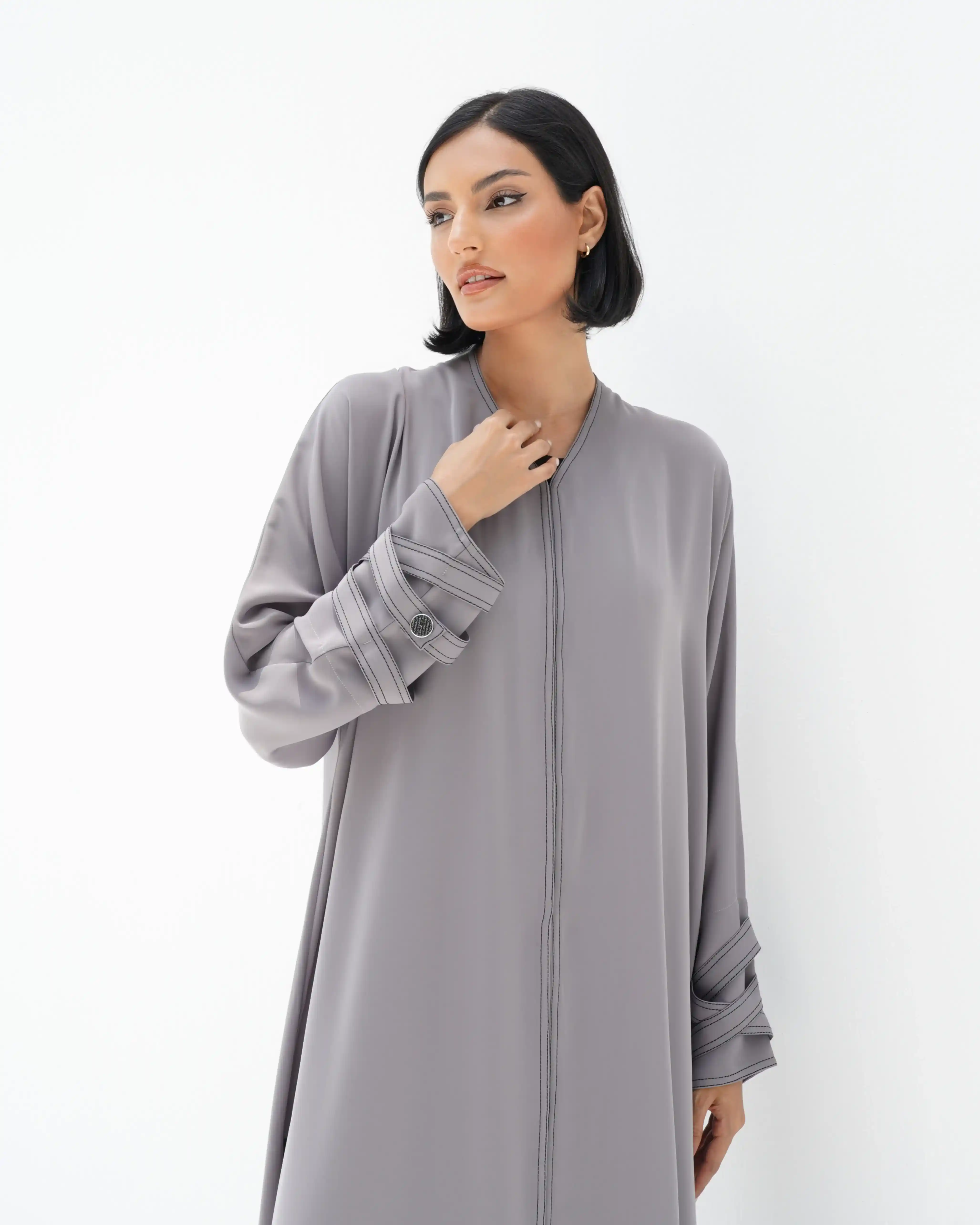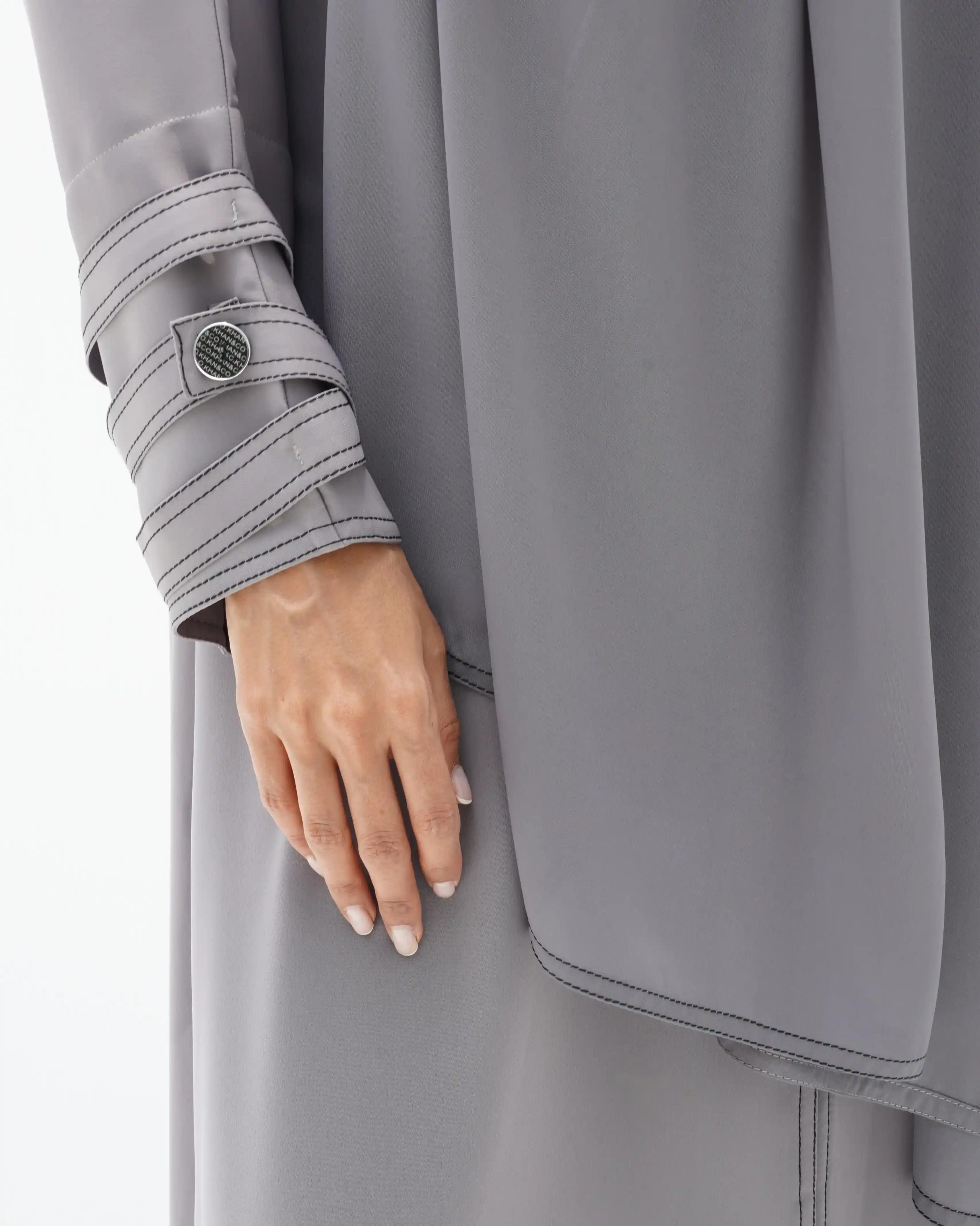 هذه العباية تمثّل انعكاسًا لروح امرأة عصرية تعشق التفرّد، بفضل تصميمها البسيط مصنوعة من قماش الكريب الناعم المنسدل والخفيف الوزن الذي جاء ليعطي كامل القطعة لمسة نعومة. يتميز التصميم بأناقة بدون عناء ويبعث على الهدوء، بينما تمنح الأكمام المزينة بالأشرطة وأزرار بعلامة .KHAN&CO الأيقونية المخصصة طابعًا استثنائيًا. تصميم يعبّر عن التوازن ما بين الأناقة الفائقة والبساطة المطلوبة سواء كنت محجبة او منقبة.