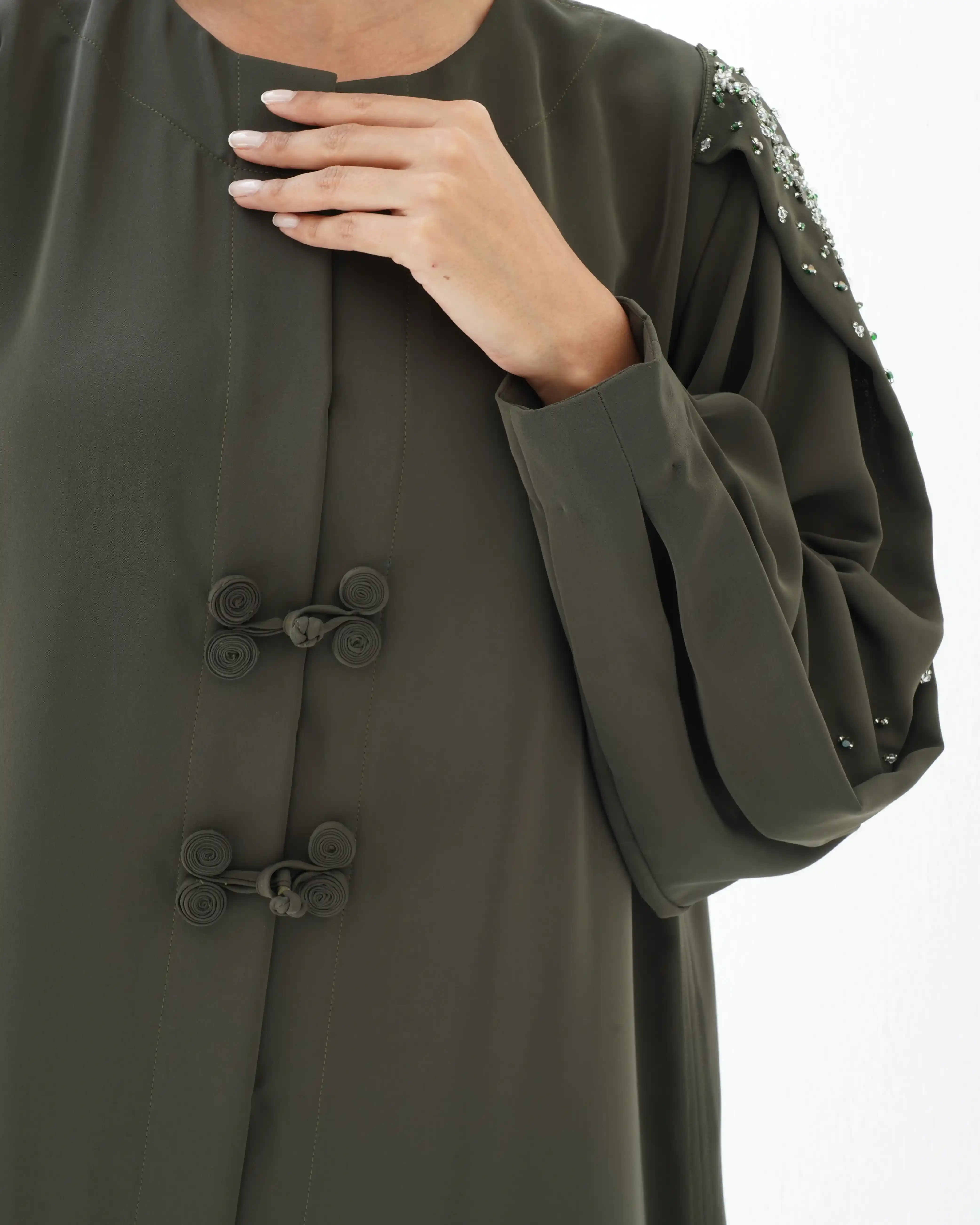 قماش البريميوم كريب مشتغلة بالكرستال والخرز واغلاق امامي مبتكر
