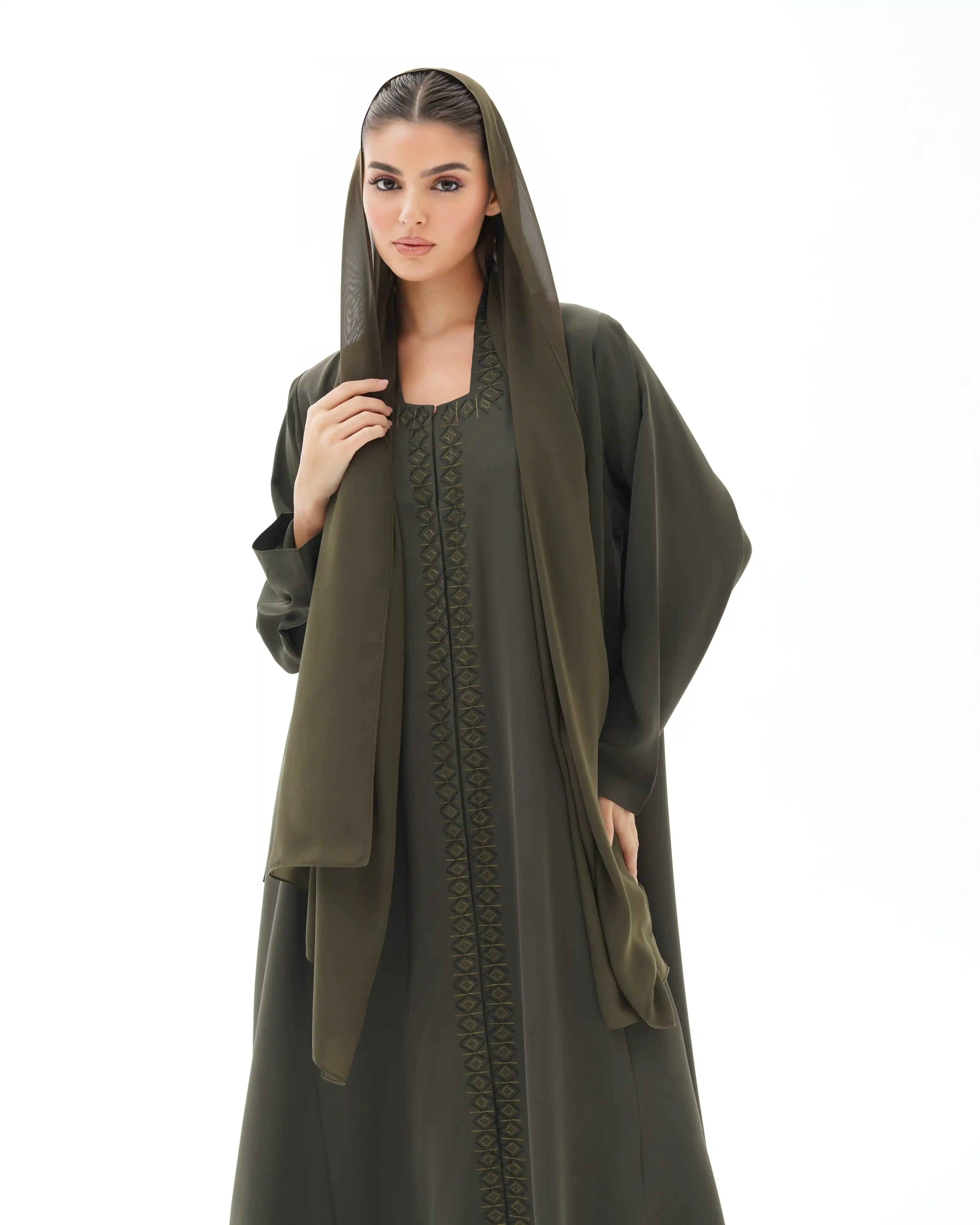 • لون القماش الزيتوني كامل العباية