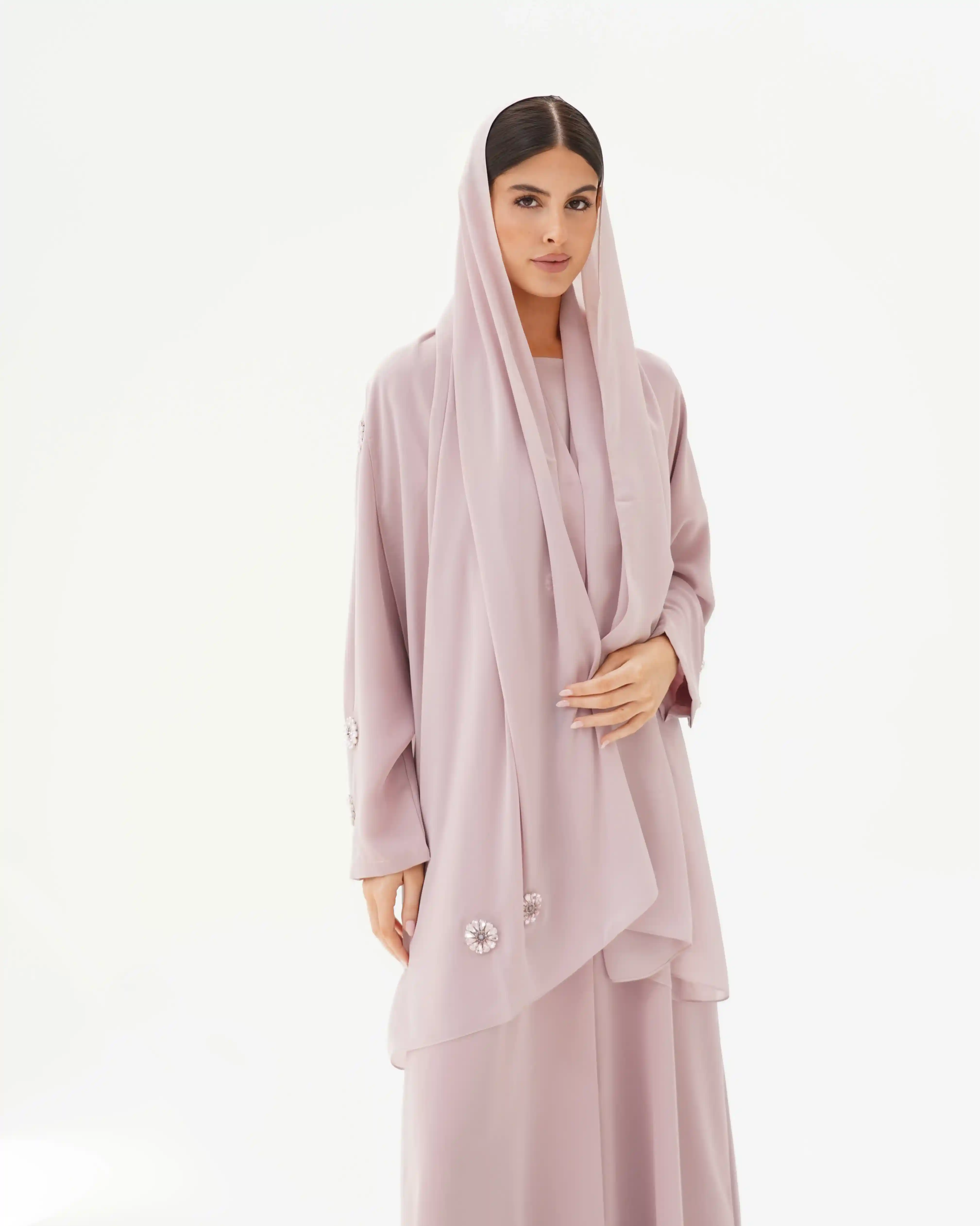 • لون  روز  كامل العباية مع كرستال باللون روز .