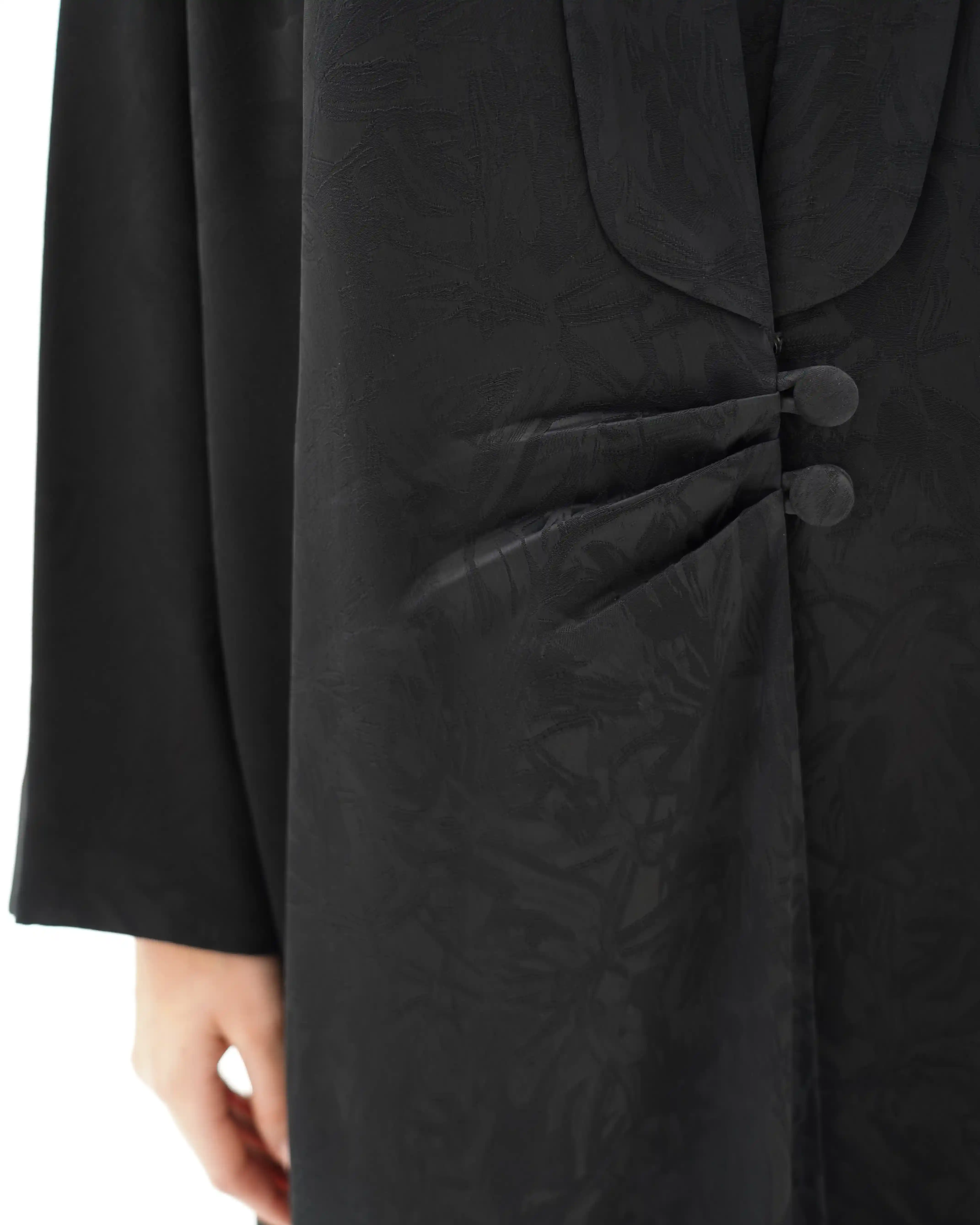 • قماش جاكارد فاخر بنقشة بارزة هادئة تمنح عمقًا بصريًا وبريقًا.